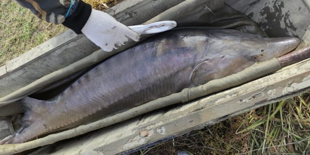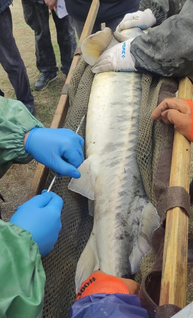 В процессе осенней бонитировки было чипировано более 1300 особей русского осетра.